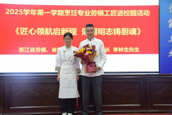 白帽挺括映初心,誓言鏗鏘振人心。11月10日下午,杭州市良渚職業高級中學烹飪部以“匠心領航啟新程,冠帽明志鑄廚魂”為核心主題,舉辦2025級烹飪專業授帽儀式暨勞模工匠進校園活動,將勞模精神傳承、職業身份認同與技藝實操指導深度融合。浙江省勞動模范、中國烹飪大師名人堂導師、國家技能鑒定中心專家委員會委員李林生親臨現場,為25級中餐、中西點心、西餐班全體新生授帽、開講、評作,讓“以德為本、德技并修”的職業種子,在青春灶臺旁落地生根。