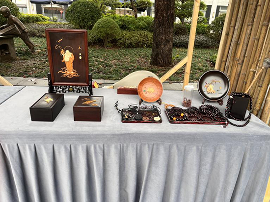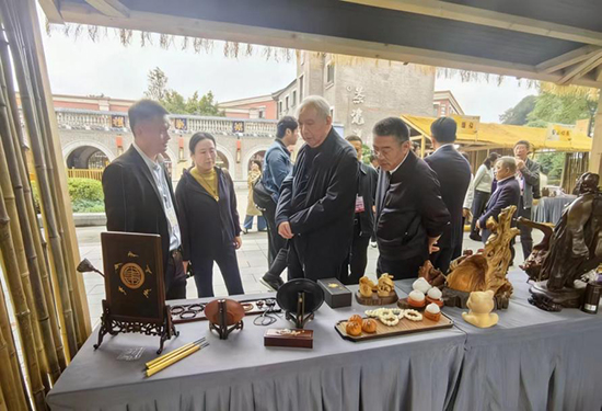 展位前,參加中華茶奧會(huì)的省領(lǐng)導(dǎo)、專(zhuān)家駐足觀看、詢(xún)問(wèn),對(duì)學(xué)校的非遺作品深感興趣,嵊州市骨木鑲嵌技藝的第五代傳人樓炯老師為他們做了詳細(xì)的解說(shuō)。學(xué)校也憑借出色的表現(xiàn)榮獲“第十屆中華茶奧會(huì)”展示與體驗(yàn)類(lèi)獎(jiǎng)項(xiàng)“非遺沉浸式體驗(yàn)金獎(jiǎng)”。