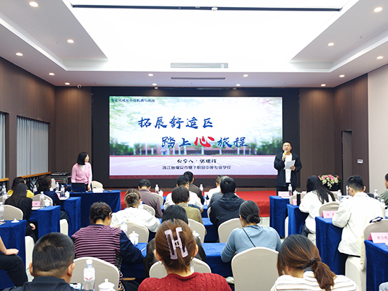 溫州市甌海職業中專集團學校副校長陳超超以《“甌潮” 文化引領下的中職 “三甌六潮” 德育模式探索》為題作專題講座。她從 “理念與路徑:以美立人”“實踐與舉措:各美其美”“輻射與傳播:美美與共” 三個維度,系統分享了學校在德育工作中的探索歷程與顯著成效。講座既有理論高度的深度剖析,又有具體案例的生動解讀,引發了研修團隊的強烈共鳴,大家紛紛表示對中職德育工作有了更清晰的思路。