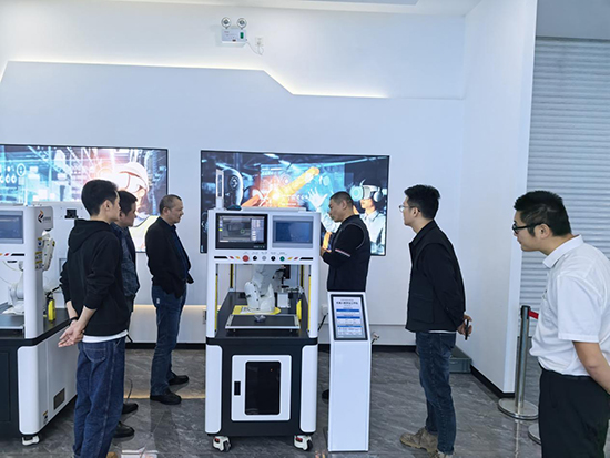 杭州龍礪智能科技有限公司創始人、董事長金忠豪熱情接待考察團,帶領老師們參觀企業生產線與產品展示區,詳細介紹企業核心業務與發展規模。作為專注于工業自動化領域的國家級高新技術企業,龍礪智能目前聚焦專業自動化打磨去毛刺一體化標準化設備研發、工業機器人制造及應用推廣,業務版圖覆蓋自動化技術、電子技術、機械設計、視覺技術等多個關鍵領域,其技術實力與產業定位與當前智能制造發展趨勢高度契合。
