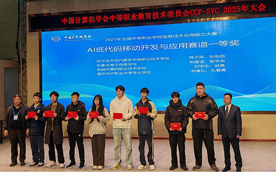 11月7日,由中國計算機學會主辦的2025年全國中等職業學校信息技術應用能力大賽“AI低代碼移動開發與應用”決賽在武漢圓滿落幕。溫州華僑職業中等專業學校兩支參賽隊伍表現亮眼,從全國 100支初賽隊伍中成功突圍,躋身35支決賽隊伍行列,最終不負眾望斬獲全國大獎。