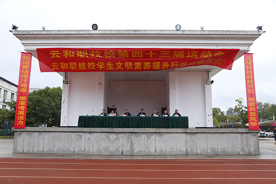 金秋送爽,丹桂飄香,11月11日上午8時,云和職技校運動場彩旗飄揚、掌聲雷動,以“青春賽場逐夢 文明素養同行”為主題的第43屆校運會開幕式暨云和職技校學生文明素養啟動儀式在此盛大啟幕。