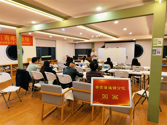 11月15日,安吉縣社區教育學院遞鋪分院熱鬧非凡,一場接地氣的國畫知識普及培訓在這里溫情開講。來自全縣各個村鎮、社區的20多位國畫愛好者齊聚一堂,有年過花甲的退休老人,有熱愛傳統文化的中青年,還有帶著孩子來感受藝術氛圍的家長,大家懷著同樣的熱忱,沉浸式感受傳統藝術的獨特魅力。