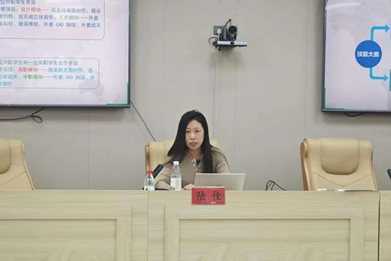 陸佳老師則從技能訓(xùn)練角度,分享了《階梯式通道——服裝技能訓(xùn)練實(shí)踐總結(jié)》。她提出的“階梯式技能人才培養(yǎng)模式”,通過清晰的階梯目標(biāo)與科學(xué)的訓(xùn)練路徑,有效破解了技能教學(xué)中“循序漸進(jìn)”的難題,為當(dāng)?shù)丶寄芨?jìng)賽訓(xùn)練提供了新思路。