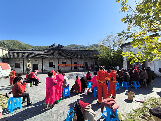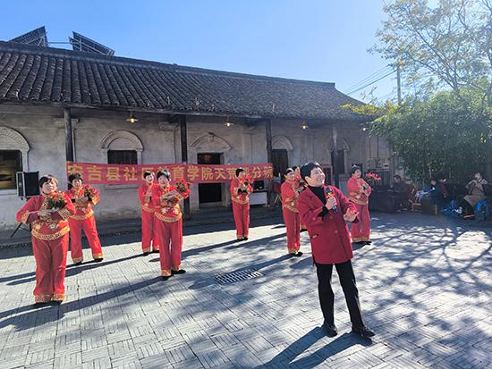 11月19日,天荒坪鎮馬吉村粟裕紀念館門前操場化作紅色文化舞臺。安吉社區教育學院天荒坪分院(天荒坪成校)老年歌詠班全體學員自發組織學期成果展演,以“紅歌+舞蹈”形式獻上20個節目。天荒坪成校校長汪華忠、馬吉村村委領導全程觀摩,村婦女主任陳凌飛擔任主持,吸引百余名村民駐足。