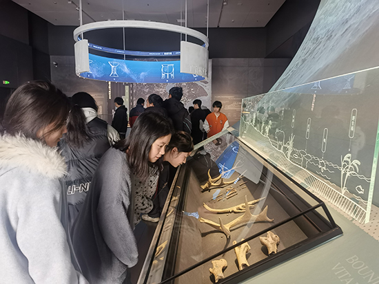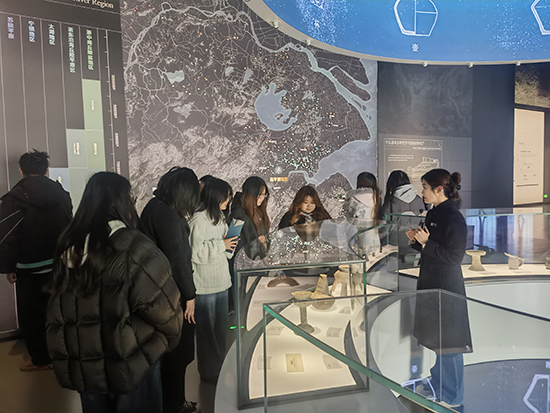 首站是“臨平遺址群展廳”。這里通過豐富的出土文物與詳實(shí)的圖文資料,全景式展現(xiàn)了臨平從新石器時(shí)代至夏商周時(shí)期人類活動(dòng)軌跡與文明演進(jìn)歷程,讓同學(xué)們對(duì)腳下這片土地的深厚積淀有了宏觀而深刻的認(rèn)識(shí)。