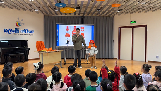 為扎實推進119消防宣傳月活動,幼兒園構建了“儀式教育+班級教學+家園聯動”的立體宣教體系:每月周一升旗儀式上,開展消防主題講話,讓消防安全知識融入日常;班級“1530”安全教育記錄本100%完成消防主題簽字確認,確保教育落地見效;15個班級統一備課,圍繞“認識火警電話119”“被子著火如何自救”“廚房燃氣泄漏應急處理”等實用場景,通過游戲化教學形式開展主題班課,讓幼兒在互動中掌握逃生技能;借助“園級—班級—小組”三級微信群,推送《家庭防火三清三關》《冬季取暖八注意》等圖文、短視頻資料,推動消防知識走進每個家庭。
