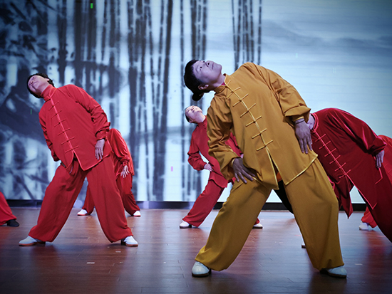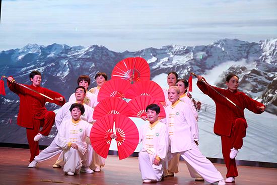 “朋友來(lái)了有好酒,若是那豺狼來(lái)了,迎接它的有獵槍”,在《我的祖國(guó)》伴奏下,太極劍扇合演則將濃濃的愛(ài)國(guó)情懷融合于劍的威猛與扇的飄逸中,剛?cè)岵?jì)間彰顯傳統(tǒng)武術(shù)的獨(dú)特魅力。