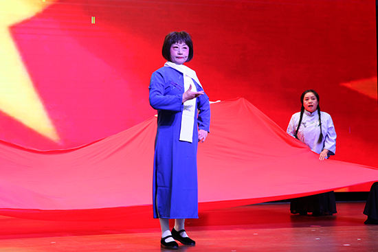 越劇唱腔《繡紅旗》婉轉(zhuǎn)深情,表演者以精湛的唱功帶觀眾重溫革命歲月里的信仰之光。