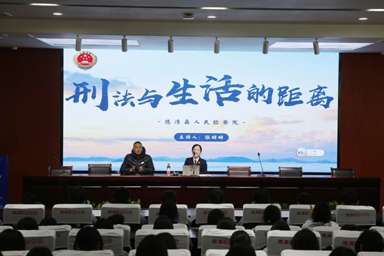 11月27日下午,一場主題為“刑法與生活的距離”的普法宣傳教育講座在德清職業(yè)中專舉辦?;顒犹匮虑蹇h檢察院第五檢查部副主任、德清縣關工委講師團講師張妍妍擔任主講,為學校財會、服裝、動漫、旅游等七個班級的200余名學子帶來了一堂生動而深刻的法治教育課。講座由學校政教處處長鄧志民主持。