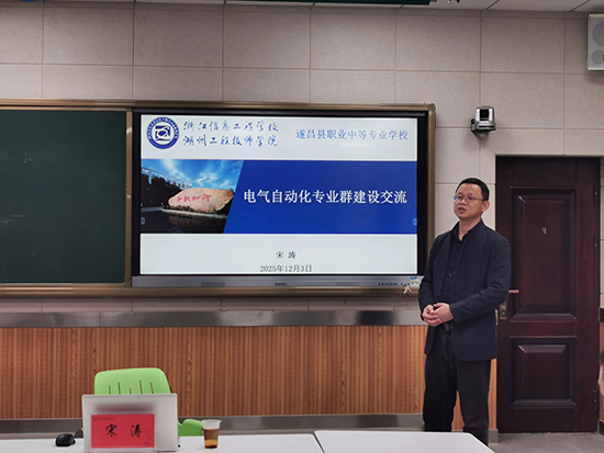 在專(zhuān)業(yè)建設(shè)分會(huì)場(chǎng),學(xué)校宋濤與湯葉飛分別圍繞電氣自動(dòng)化、智能制造專(zhuān)業(yè)群建設(shè)作專(zhuān)題分享,兩位負(fù)責(zé)人從兩大“雙優(yōu)”專(zhuān)業(yè)群組群邏輯出發(fā)進(jìn)行深入分析,從專(zhuān)業(yè)群建設(shè)的七大任務(wù)和特色項(xiàng)目詳細(xì)介紹專(zhuān)業(yè)群建設(shè)規(guī)劃,兩位負(fù)責(zé)人科學(xué)剖析兩大專(zhuān)業(yè)群產(chǎn)業(yè)趨勢(shì)與人才培養(yǎng)的對(duì)接路徑,并就立德樹(shù)人育人體系、人才培養(yǎng)模式、課程體系重構(gòu)、實(shí)訓(xùn)資源整合及校企協(xié)同機(jī)制創(chuàng)新提出具體的實(shí)施方案。分會(huì)場(chǎng)由遂昌職業(yè)中專(zhuān)副校長(zhǎng)(主持工作)劉靚帶領(lǐng)“雙優(yōu)”專(zhuān)業(yè)群負(fù)責(zé)人、教研組長(zhǎng)、骨干教師參與了本次研討會(huì),與會(huì)專(zhuān)業(yè)負(fù)責(zé)人結(jié)合自身專(zhuān)業(yè)群建設(shè)的實(shí)際提出建設(shè)中的難點(diǎn)與困惑。交流共同中,兩所學(xué)校就專(zhuān)業(yè)群組群邏輯深入研究、探討,與會(huì)骨干教師紛紛提出自己在子項(xiàng)目建設(shè)中的思考,交流內(nèi)容緊密聚焦“雙優(yōu)”專(zhuān)業(yè)群建設(shè)核心重點(diǎn),針對(duì)性強(qiáng),本次交流研討為兩所學(xué)校深入推進(jìn)“雙優(yōu)”專(zhuān)業(yè)群建設(shè)達(dá)成了切實(shí)可行的思路。