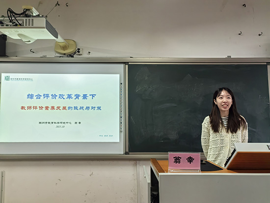 培訓(xùn)特邀浙江省教研室評價部副主任陳榮榮老師、湖州市教育科學(xué)研究中心翁幸老師開展專題講座。陳榮榮老師以《教學(xué)質(zhì)量評價的內(nèi)涵與技術(shù)》為題,從政策背景、專業(yè)背景、文件背景三個角度闡述教學(xué)質(zhì)量評價的內(nèi)涵,結(jié)合具體案例引導(dǎo)教師思考素養(yǎng)導(dǎo)向下的評價策略,明晰評價與教學(xué)的深度融合路徑。翁幸老師則聚焦《綜合評價改革背景下教師評價素養(yǎng)發(fā)展的挑戰(zhàn)與對策》,系統(tǒng)解讀浙江省綜合評價改革頂層設(shè)計,通過數(shù)據(jù)監(jiān)測分析與優(yōu)秀案例展示,詳解評價指標體系構(gòu)建、非紙筆測評設(shè)計等實操要點,幫助教師精準把握改革方向。