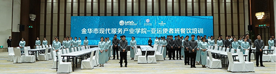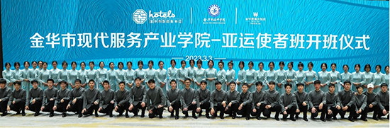 圖片說明:2023年,學校抓住杭州亞運會舉辦的契機,金華市技師學院與合作企業金華市君瀾大飯店共同推出現代服務專業群“亞運使者班”(亞運會結束后,該班名稱改為“君瀾使者班”),為學生創造高品質的真實實踐的機會。
