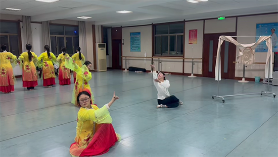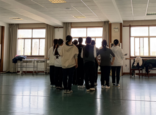 把故事融入肢體:放下書包,便轉身投入練功房。從最基礎的一招一式,到隊形的每一次變換,反復打磨,直至肌骨銘記。淤青悄然爬上她們的膝蓋,她們卻稱之為“經典的勛章”——那是經典在青春身體上刻下的、發光的印記。