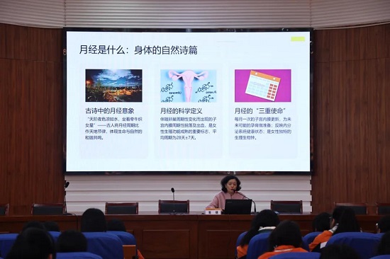 董婕老師以“青春同行,守護成長”為主題,從臨床視角切入,結合二十余年婦產科診療經驗,圍繞青春期生理發育、常見健康問題、心理調適方法等內容展開系統講解。她用通俗易懂的語言、真實生動的案例,細致解析青春期身體變化規律,引導學生正確看待成長過程中的自然現象,學會關注自身健康狀態。講座中,董老師特別強調了青春期健康管理的重要性,從規律作息、均衡營養、衛生習慣、情緒調節等方面提出實用建議,幫助學生建立科學、主動的健康觀念。