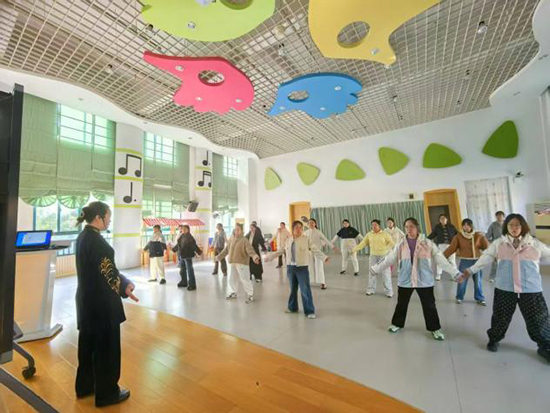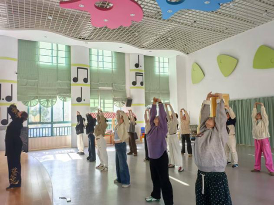 陳小平老師在古林鎮實驗幼兒園帶領教職工和家長體驗傳統養生功法八段錦。從理論講解到動作示范,大家在一呼一吸、一招一式間感受身心舒展。陳老師還鼓勵參與者課后堅持練習,讓養生成為日常健康生活的一部分。