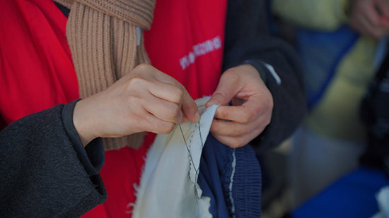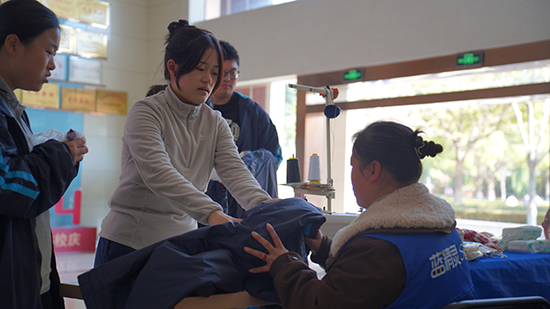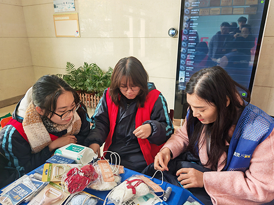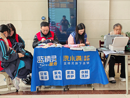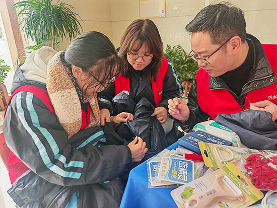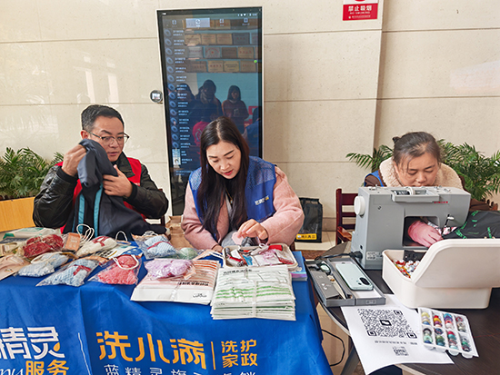 活動當日,服務站前師生絡繹不絕。服裝設計與工藝專業的學生在校企雙師的共同指導下飛針走線,讓一道道裂口悄然“愈合”,盡顯扎實的技能功底;藝術設計與制作專業的學生全程跟進現場視覺維護,運用色彩與構圖,傳遞冬日里的小溫暖;還有貼心準備的小禮品,承載著心意與溫度,被送到師生手中。