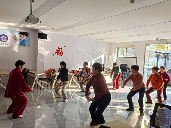 第一次課程在老年居民們略顯生疏但完整的演練中結(jié)束。曹素珍阿姨額頭滲出細汗,臉上卻掛著滿足的笑容:“出了一身汗,渾身舒暢!下周四我一定準時來。”