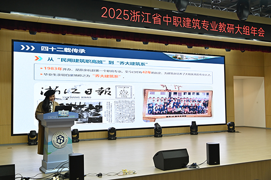 喬司職業(yè)高級(jí)中學(xué)黨總支書記卻旦代表學(xué)校致辭,她表示,今年是喬司職高建校65周年,而建筑專業(yè)對(duì)學(xué)校職教發(fā)展歷史有著非同尋常的意義,學(xué)校職業(yè)教育的序幕就是由建筑專業(yè)拉開的。1983年秋季,開辦當(dāng)時(shí)第一個(gè)職高專業(yè)——民用建筑職業(yè)班,從此,學(xué)校從一所普高,逐漸向職業(yè)高中轉(zhuǎn)型,開啟了職業(yè)教育波瀾壯闊的序章。她表示愿與全省同仁一道,緊跟職教改革與行業(yè)趨勢,深化產(chǎn)教融合,優(yōu)化人才培養(yǎng),共同為推動(dòng)浙江省建筑職業(yè)教育高質(zhì)量發(fā)展貢獻(xiàn)力量。