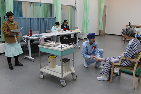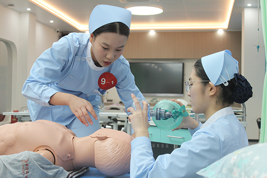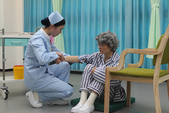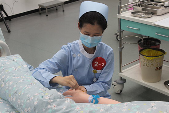 大賽設理論與技能兩大模塊,考評體系科學嚴謹。理論考試時長40分鐘,覆蓋護理基礎、急救規范等內容,占總成績10%,重點考察選手知識儲備;技能實操分兩個賽道,占比90%,更重實戰。