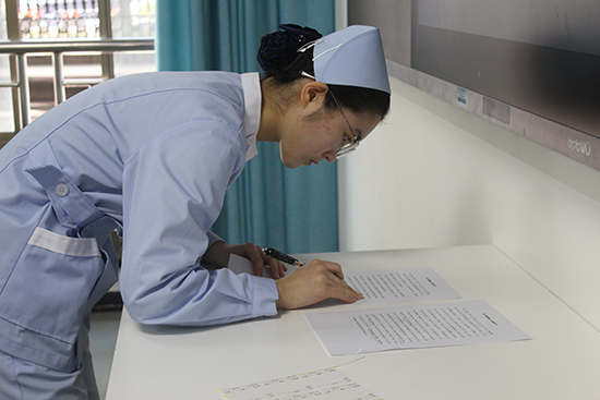 理論考場上,選手們沉著執筆,憑借扎實基礎流暢作答,盡顯對護理知識的熟練掌握。