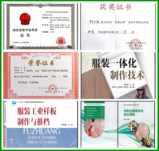 她的課堂永遠是創新前沿。從全國說課比賽一等獎到省教學能力大賽屢獲佳績,郝紅花率先探索人工智能與專業教學深度融合。她引入企業真實制板方法,運用專業跟蹤評價系統、詞云平臺、3D虛擬試衣軟件等打造智慧課堂。她深耕教學改革,主持的《三鏈協同·段位進階:中職服裝專業全鏈式育人的創新實踐》獲2025年浙江省教學成果一等獎,另外主持參與的教學成果獲國家級二等獎1項、省級一等獎1項,二等獎2項,她始終踐行“以學生為中心”,讓技術賦能成長,讓創新激發潛能。