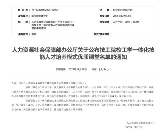 近日,人力資源社會保障部辦公廳正式公布全國技工院校工學一體化優質課堂名單,新昌技師學院申報的《漲緊輪軸數控車床加工》課堂成功入選!這一國家級榮譽不僅是對該課程教學質量的高度認可,更是學院深化工學一體化教學改革、培育優質技能人才的有力佐證,為區域數控加工專業職教發展樹立了標桿!