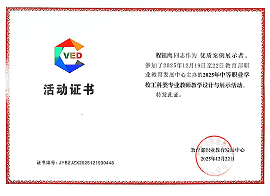 2025年12月20日,由中國(guó)教育部職業(yè)教育發(fā)展中心主辦、高等教育出版社等單位承辦的“2025年中等職業(yè)學(xué)校工科類(lèi)專(zhuān)業(yè)教師教學(xué)設(shè)計(jì)與展示活動(dòng)”在福州圓滿落幕。經(jīng)過(guò)激烈角逐,臨海市中等職業(yè)技術(shù)學(xué)校教師盧晨老師憑借其卓越的教學(xué)設(shè)計(jì)作品《東風(fēng)風(fēng)光580 曲軸位置傳感器的檢測(cè)與更換》,從全國(guó)近130位交通類(lèi)學(xué)科參賽教師中脫穎而出,榮獲“典型案例展示”獎(jiǎng)項(xiàng)(一等獎(jiǎng));程鈺鷹憑憑著匠心之作《一筆繪鴟吻,一紙承古建:古建鴟吻復(fù)原圖的繪制》榮獲“建筑優(yōu)質(zhì)案例展示”獎(jiǎng)項(xiàng)(二等獎(jiǎng))。