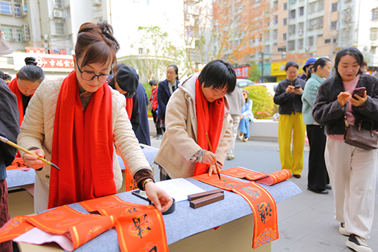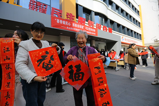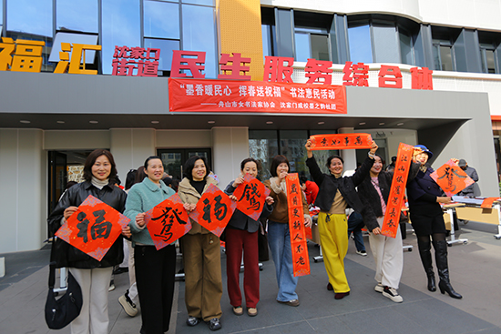 12月23日,沈家門街道成校墨之韻書法社團(tuán)的10位學(xué)員,攜手舟山市女書法家協(xié)會(huì)的成員,走進(jìn)沈家門街道民生綜合體,揮毫潑墨寫春聯(lián)、送福字,為轄區(qū)群眾送上冬日里的文化暖意。這是該社團(tuán)成立兩年來,又一次深入基層服務(wù)群眾,盡顯其與日俱增的社會(huì)影響力。