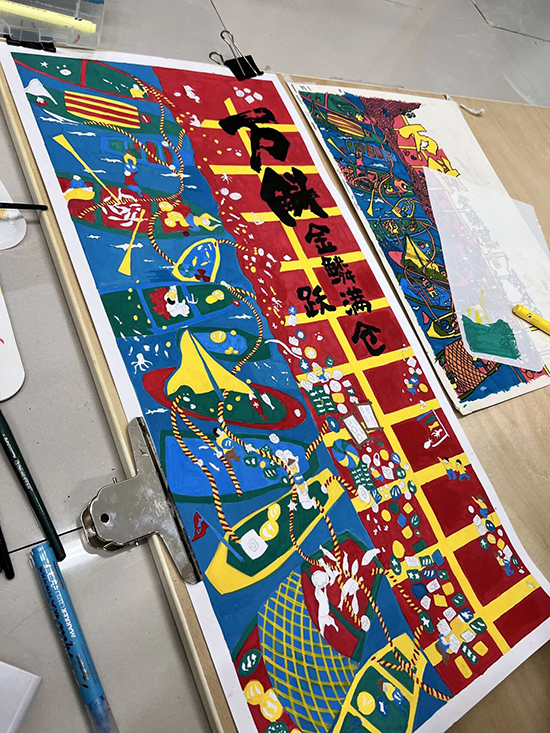 數(shù)易其稿后,葉子最終以大膽的色彩碰撞、飽滿的畫(huà)面敘事,讓家鄉(xiāng)的開(kāi)漁文化在省賽舞臺(tái)上綻放光彩。