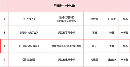 這份榮譽(yù)的背后,是指導(dǎo)教師劉婧的專業(yè)引領(lǐng),更是葉子對(duì)家鄉(xiāng)洞頭漁文化的深情詮釋。