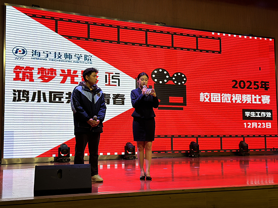 “筑夢(mèng)光影”間綻放創(chuàng)意火花,二十部佳作詮釋多元校園風(fēng)采。2025年12月23日海寧技師學(xué)院2025年“筑夢(mèng)光影,鴻小匠共繪青春”校園微視頻大賽在熱烈氛圍中圓滿落幕。全校各學(xué)院20支參賽隊(duì)伍齊聚賽場(chǎng)、同臺(tái)競(jìng)技,同學(xué)們以創(chuàng)意鏡頭捕捉校園百態(tài),用鮮活畫面詮釋青春內(nèi)涵,為現(xiàn)場(chǎng)師生呈現(xiàn)了一場(chǎng)兼具思想深度、藝術(shù)質(zhì)感與觀賞價(jià)值的視聽盛宴。