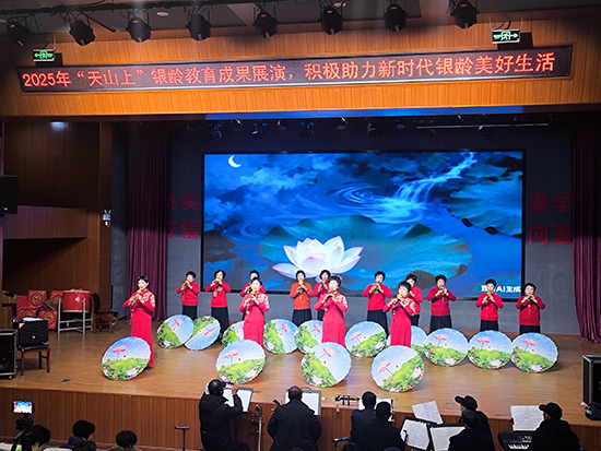 演出在民樂合奏《走進新時代》《歌唱祖國》的激昂旋律中拉開序幕,鑼鼓、二胡、笛子、電子琴等各類樂器的合奏氣勢恢宏,瞬間點燃全場氣氛。隨后,戲曲《西湖山水》《觀燈》選段韻味悠長,學員們字正腔圓的唱腔、惟妙惟肖的身段,展現了傳統藝術的獨特魅力;太極拳與太極扇表演則剛柔并濟,學員們行云流水的動作詮釋了中華武術的博大精深,贏得陣陣掌聲。