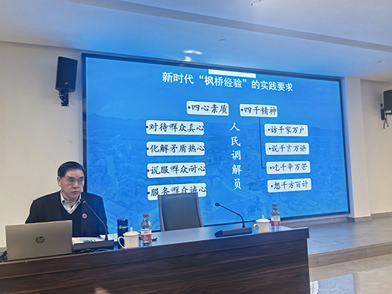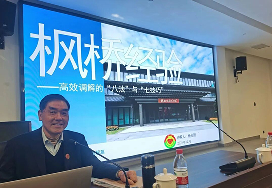 12月12日,紹興市第一期“紅楓式”義警孵化組織負責人培訓班在諸暨楓橋學院正式開訓。諸暨市楓橋鎮人民調解委員會專職調解員、楓橋鎮調解志愿者聯合會副會長楊光照,以《“楓橋經驗”高效調解的“八法”與“七技巧”》為題,為全體學員帶來了一堂干貨滿滿的實戰課。
