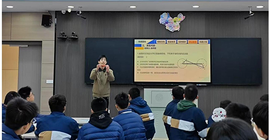 麗水市職業高級中學潘陸濤老師執教《沉浸式探究鉸鏈四桿機構的奧秘》,以生活機械案例導入后,引導學生展示自制模型,先識別“機架、連架桿、連桿”的組成,再通過觀察連架桿的運動形式判斷機構類別。期間借助AI分析例題,輔助學生梳理不同機構的運動特性,讓抽象知識在實操與智能輔助中清晰落地。