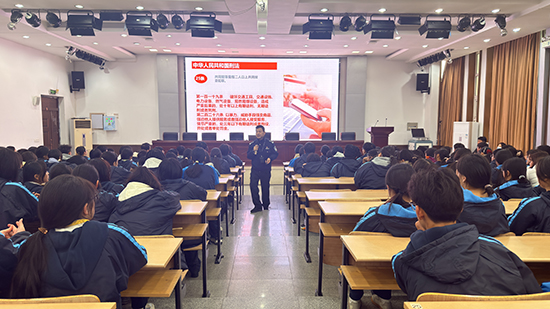 為增強學生法治觀念,提升安全防范意識,12月23日,嘉興市秀水中等專業學校特邀嘉興市公安局經開分局城南派出所四級高級警長張秋江警官來校,開展了一場內容扎實的法治安全教育講座。副校長嚴葉偉、安全處主任朱小虎、各系部德育副主任及300余名師生共同參加。