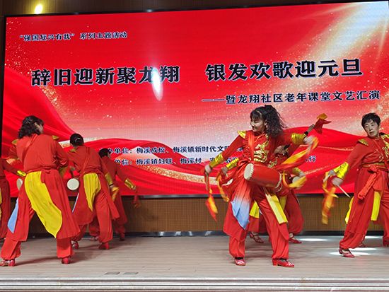 12月25日下午,梅溪村文化大禮堂內張燈結彩、暖意融融,“辭舊迎新聚龍翔,銀發歡歌迎元旦”迎元旦暨龍翔老年學堂年終文藝匯演在此溫情上演。本次活動由安吉縣社區教育學院梅溪分院(梅溪成校)、龍翔社區聯合主辦,多部門協辦,為轄區老年朋友獻上了一場精彩紛呈的文化盛宴。