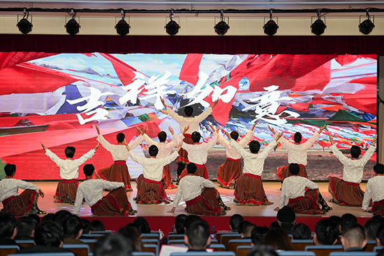 音樂情景劇《一張“涂鴉”的答案》通過涂鴉少年的成長故事,生動詮釋了學校“以生為本、因材施教”的教育理念。歷屆校友帶來的歌曲串燒《我的青春年華》滿含對母校的眷戀與感恩。2007屆畢業生、平湖市優秀民營企業家俞佳健作為校友代表登臺分享校園回憶與創業心得,向母校送上真摯祝福。藏舞《吉祥如意》展現了學校對口支援四川省若爾蓋縣技能人才培養的豐碩成果,傳遞了東西協作、教育共富的使命擔當。來自越南大南大學的師生帶來歌曲《你來我往有情緣》,展現了多元文化交融的魅力,彰顯了學校響應國家號召、推進“職教出海”的開放辦學格局。