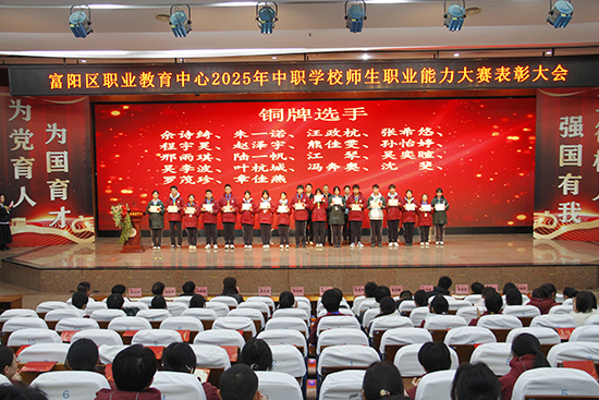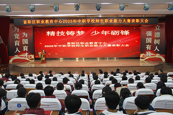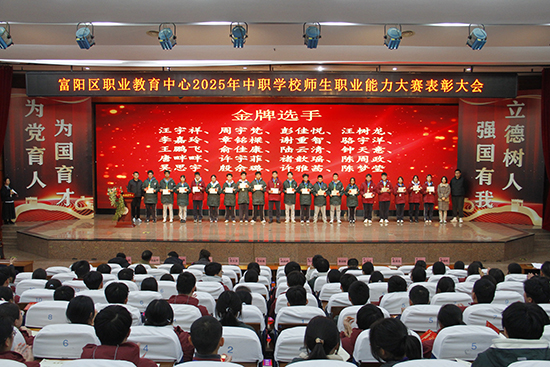 為慶祝學(xué)校在2025年杭州市中職學(xué)校師生職業(yè)能力大賽中取得優(yōu)異成績,12月10日下午,富陽區(qū)職業(yè)教育中心特召開競賽表彰大會(huì)。劉忠明書記、夏峰巍校長、章文泉副校長、陳建榮副書記、婁俊屹委員和各專業(yè)部部長、副部長出席此次活動(dòng)。100余名市賽獲獎(jiǎng)師生和輔導(dǎo)老師參加現(xiàn)場頒獎(jiǎng)典禮,全校2000余名學(xué)生在教室內(nèi)觀看現(xiàn)場直播。此次表彰大會(huì)由教務(wù)處陳宇絢副主任主持。