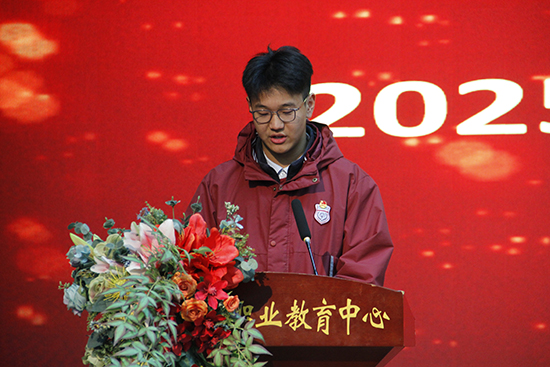 接著王鵬飛同學(xué)作為獲獎(jiǎng)學(xué)生代表發(fā)言。作為一等獎(jiǎng)獲得者,王鵬飛坦言,他曾經(jīng)也因?yàn)?ldquo;職高學(xué)生”這個(gè)身份有過彷徨。但入學(xué)兩年來,他感受到了職業(yè)教育的舞臺(tái)同樣廣闊,技能報(bào)國的道路同樣寬闊。在職教中心這所學(xué)校,他找到自己熱愛且擅長的領(lǐng)域,憑著一技之長,同樣實(shí)現(xiàn)了價(jià)值,贏得了尊重。