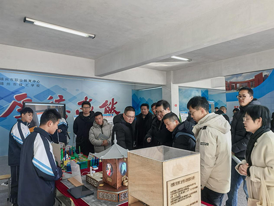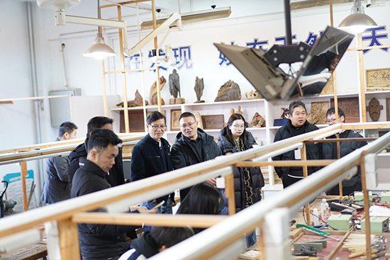 來訪嘉賓依次參觀了學校的木雕實訓室、民間工藝精品館、汽修鈑金與油漆實訓室、汽車營銷實訓室、服裝實訓樓及創客教育展廳,對學校特色實訓基地建設和實踐教學成果給予高度評價。