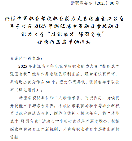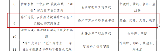 近日,浙江省教育廳公布2025年全省中等職業(yè)學(xué)校職業(yè)能力大賽“技能成才 強(qiáng)國有我”優(yōu)秀作品名單,嘉興市秀水中等專業(yè)學(xué)校報(bào)送的《春野詩箋:以自然詩境滋養(yǎng)中職生心靈韌性的實(shí)踐探索》成功入選。