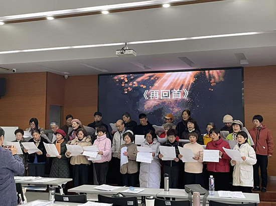 隨后,精彩的演唱環(huán)節(jié)依次展開。男學(xué)員們以飽滿的熱情合唱《我和我的祖國》。激昂的旋律、真摯的情感,唱出了退休人員對(duì)祖國的無限熱愛與深深祝福,贏得了現(xiàn)場(chǎng)陣陣掌聲。最后,全體學(xué)員共同唱響《再回首》,溫情的歌聲訴說著歲月的故事,也凝聚著學(xué)員們?cè)诼晿钒嘞嗵幍狞c(diǎn)滴情誼,每一個(gè)音符都充滿了感染力。