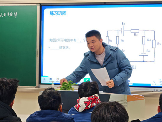 周世偉老師在《基爾霍夫電流定律》一課中,針對復雜電路分析難點,利用仿真軟件進行直觀演示。課程從厘清“支路”“節點”概念出發,通過探究定律內容到逐步練習的“小步子”教學法,協助學生構建系統化的電路分析思維。
