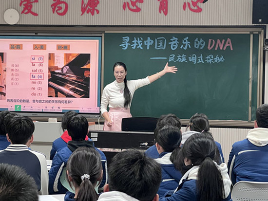 張玲娜老師在音樂鑒賞課《尋找中國音樂的DNA——五聲調式探秘》中,通過古琴與鋼琴的現場音階對比、多首代表性民歌的聆聽分析,帶領學生探尋五聲調式“和、靜、圓”的審美特征。學生嘗試進行簡短的旋律編創,實現了從感性認知到文化理解的深化。