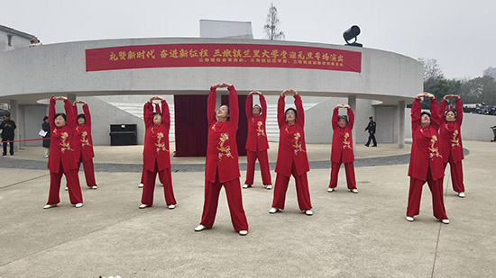 整場演出展演融合,讓文化“活”起來。從“水鄉情”、“燈彩韻”到“三墩人”三個篇章,層層遞進。三墩鎮古龍俱樂部帶來的傳統《舞獅》表演率先暖場,雄獅騰躍,精神抖擻,瞬間點燃了現場氣氛。緊接著的分別有旗袍秀班的《綠水青山》走秀和《唐人繡》一襲旗袍,一步風華;民族舞班的《草原上升起》和《采茶舞》,古典舞班的《盈盈荷花語》在曼妙的舞姿中盡顯江南的柔情和草原的遼闊;蘭里誦讀班的《春江花月夜》吟唱了“春江潮水連海平,海上明月共潮生”的唯美;蘭里氣功班的《健身氣功八段錦》和《健身氣功大舞》,蘭里太極拳班的太極《我的祖國》和太極精要《陳氏十八式》,帶大家領略國粹精華,感受調理身心、和諧安康之道;柔力球班的《五星紅旗》和《夢想啟航的地方》則是剛柔并濟、活力四射。學校將教學成果通過以上多種藝術形式進行創造性轉化,不僅展現了學員技藝,更體現了傳統文化在當代社區的傳承。