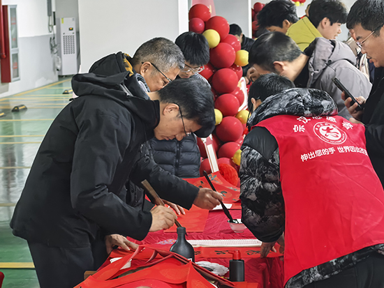 活動現場張燈結彩,年味十足。“翰墨迎春”送福區內,社區書法愛好者揮毫潑墨,將一副副春聯、一個個“福”字贈予鄰里,展現了社區成人美育的成果。隨后的“蛋糕送福”環節,社區負責人送上新年祝福,并與居民分享甜蜜蛋糕,傳遞團圓溫情。