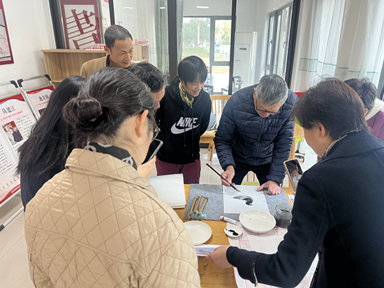 本期國畫班秉持“零基礎、小班化、重體驗”的辦班理念,為社區書畫愛好者量身定制了一套階梯式課程體系。宗漢社區教育中心特邀具有豐富教學經驗的本地畫家孫岳真主講,從最基礎的“文房四寶”認知、執筆運腕技巧講起,通過“理論講解—示范演示—手把手輔導—作品互評”的沉浸式教學閉環,循序漸進地引領學員們徜徉于水墨世界。學員們在老師悉心指導下,從最初勾勒線條時的生澀顫抖,到逐漸掌握水墨濃淡干濕的微妙變化,最終能夠獨立完成一幅幅意趣盎然的蝦蟹小品或清雅挺拔的梅竹圖景,實現了從“旁觀者”到“創作者”的美麗蝶變。