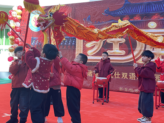 2025年12月26日,諸暨市阮仕雙語幼兒園內暖意融融、熱鬧非凡,“金駒賀歲 ‘廟’趣橫生”主題迎新廟會歡樂啟幕。園內打造的風味小吃街與民俗納福街各設10個特色攤位,現場人潮涌動,叫賣聲、歡笑聲交織不斷,孩子們穿梭其間、駐足流連,沉浸式感受著濃濃的年味與趣味。萌星大戲臺上,各班選送的精彩節目輪番上演,喜慶氛圍拉滿,整個園區處處洋溢著歡樂祥和的迎新氣息。
