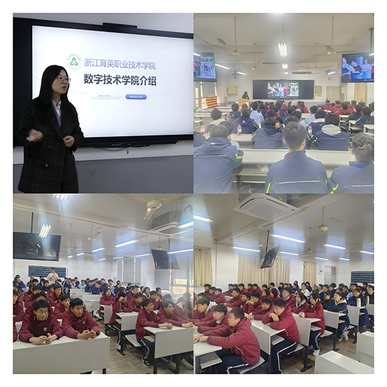 隨后,師生們來(lái)到會(huì)議室,數(shù)字技術(shù)學(xué)院劉清華副院長(zhǎng)對(duì)大家的到來(lái)表示了熱烈歡迎。劉院長(zhǎng)以宏觀的視角,向大家系統(tǒng)介紹了浙江育英職業(yè)技術(shù)學(xué)院的整體辦學(xué)特色、數(shù)字技術(shù)學(xué)院的發(fā)展定位、專業(yè)集群建設(shè)以及近年來(lái)在人才培養(yǎng)、技能競(jìng)賽等方面取得的突出成就。劉院長(zhǎng)的講解高屋建瓴,讓同學(xué)們對(duì)高職院校的辦學(xué)模式和數(shù)字技術(shù)領(lǐng)域的發(fā)展前景有了框架性的認(rèn)識(shí)和直觀感受。緊接著,網(wǎng)絡(luò)技術(shù)專業(yè)負(fù)責(zé)人易明升老師為同學(xué)們帶來(lái)了更為聚焦和深入的專業(yè)解讀。易老師結(jié)合行業(yè)發(fā)展趨勢(shì)和人才需求,詳細(xì)講解了網(wǎng)絡(luò)技術(shù)專業(yè)的課程體系、核心技能、實(shí)訓(xùn)條件、校企合作項(xiàng)目以及畢業(yè)生的多元發(fā)展路徑。通過(guò)生動(dòng)的案例和直觀的數(shù)據(jù),同學(xué)們對(duì)自己所學(xué)專業(yè)在高等教育階段的深化方向及廣闊的就業(yè)前景有了更具體、更真切的感知,心中的目標(biāo)也變得更加明晰。此次參觀的最后一站,別開(kāi)生面。育英學(xué)院為同學(xué)們準(zhǔn)備了一節(jié)“有趣的思政課”。課程巧妙地將職業(yè)精神、工匠精神、人生規(guī)劃與當(dāng)代青年的責(zé)任擔(dān)當(dāng)相結(jié)合,通過(guò)互動(dòng)討論、情景思考等活潑形式,引導(dǎo)同學(xué)們思考如何將個(gè)人技能成長(zhǎng)融入國(guó)家發(fā)展之中。這堂課不僅是一場(chǎng)思想啟迪,更是一次深刻的職業(yè)信念教育,讓同學(xué)們體會(huì)到,優(yōu)秀的技能人才必然是德技并修的時(shí)代新人。